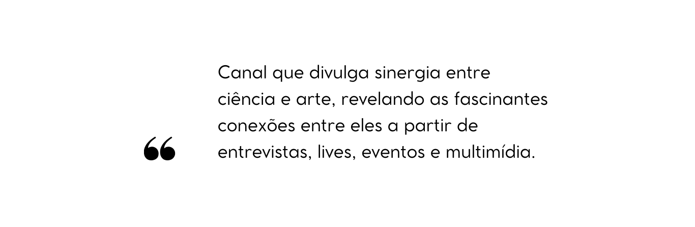 Foi iniciado por entrevistas semanais com pessoas da área da ciência, arte, cultura e da universidade, e hoje promove lives esporádicas, encontros e exposições como fomento da ciência e arte.
